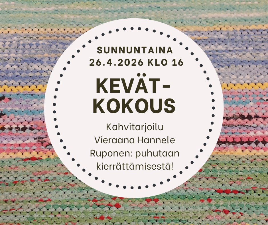 Kyläyhdistys Laineranta ry:n sääntömääräinen kevätkokous kello 16 alkaen. Saamme vieraaksi Hannele Ruposen, joka kertoo meille elinkaarikierrättämisestä. Hannele on luovan hyvinvoinnin ohjaaja ja…